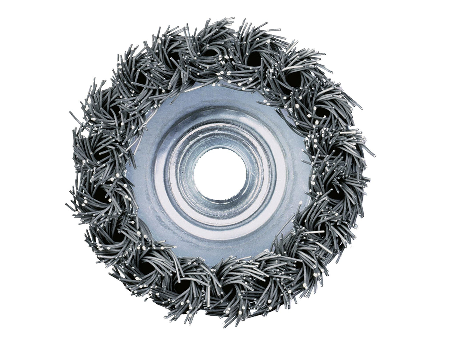 DEWALT DT3480 Crimped Wire Cup Brush for removing paint, rust, deposits, surface remediation, deburring, and other tough application.