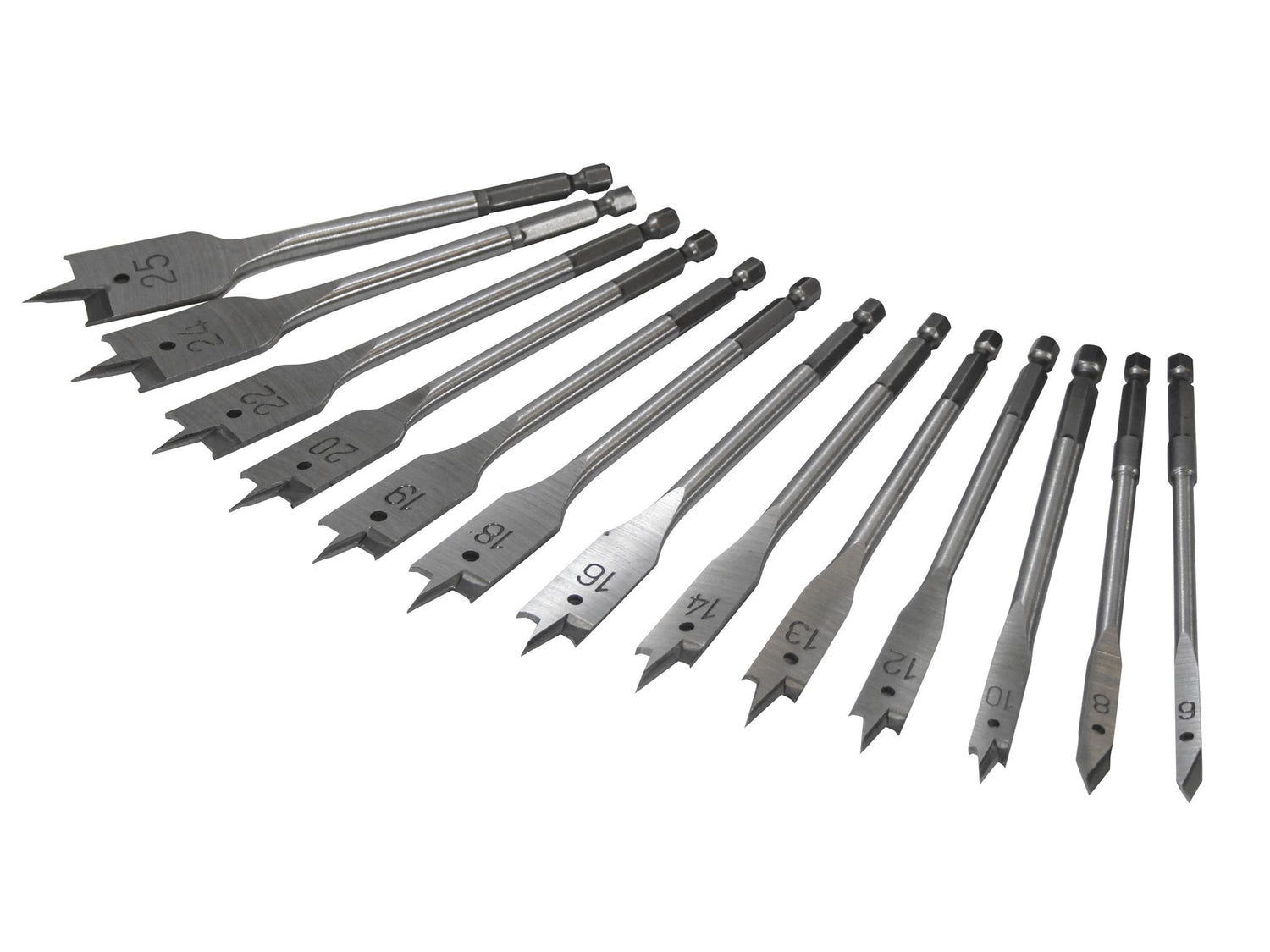 Faithfull Flat Bits produce a clean cut at a fast and efficient rate. They will bore all types of timber and will perform just as well with, or against the grain. These bits are also suitable for cutting MDF, plastics and plasterboard.