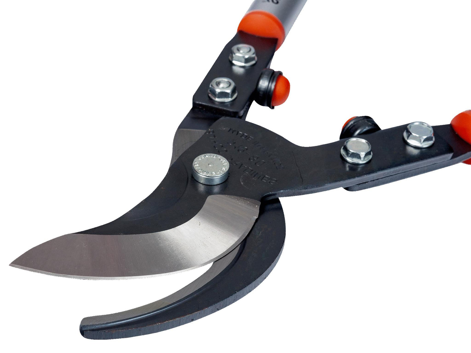 The handles are made of aluminium tube for easy handling. The cutting head has a double radii blade for powerful cuts and a smooth finish. These loppers are very comfortable to use and the soft rubber buffers between the handles prevent fatigue.