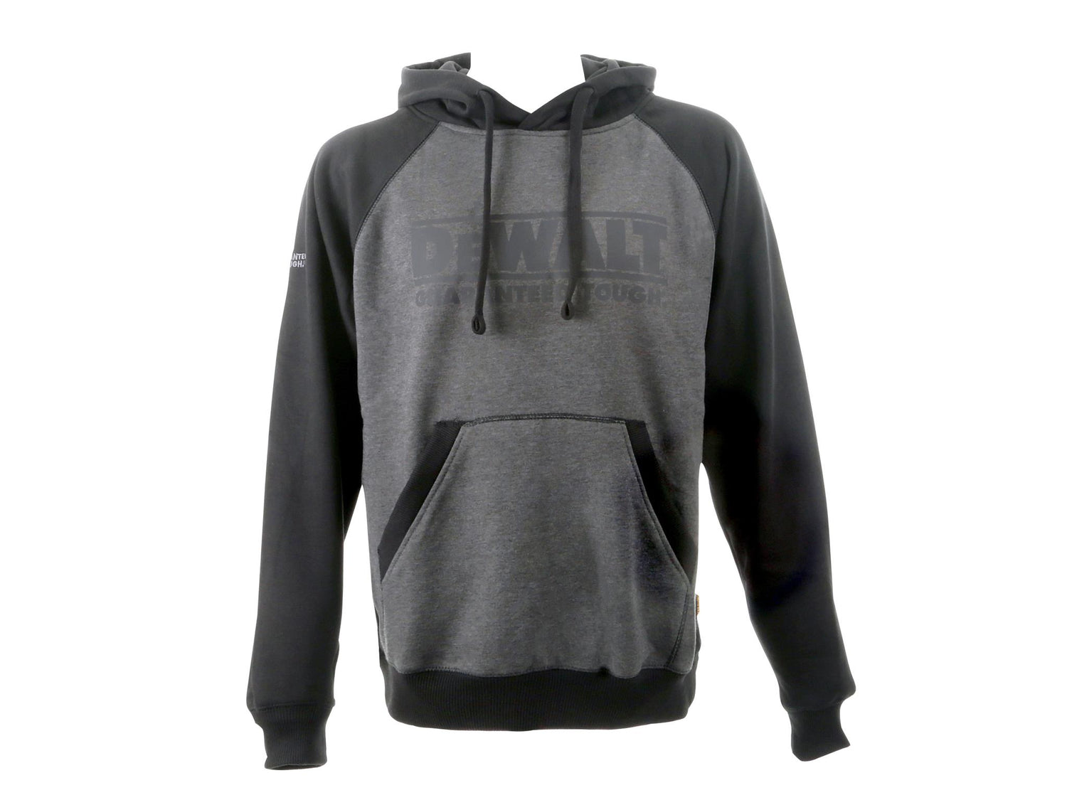 The DEWALT Stratford Hooded Sweatshirt is a warm garment, ideal for those colder days at work. It has a large kangaroo front pocket and draw corded hood. The design features a large DEWALT logo across the chest.