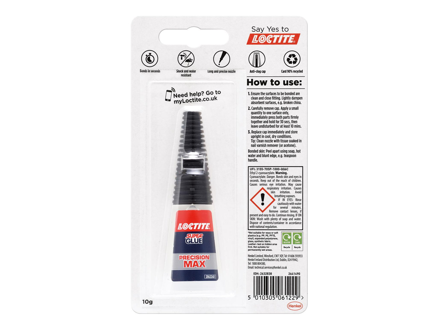 Loctite Super Glue Liquid Precision is specially designed for accuracy with its anti-clog cap and extra-long nozzle. Ideal for precise and hard-to-reach applications. With instant strength in a single drop, combines cyanoacrylate technology to ensure durability whilst drying transparently.