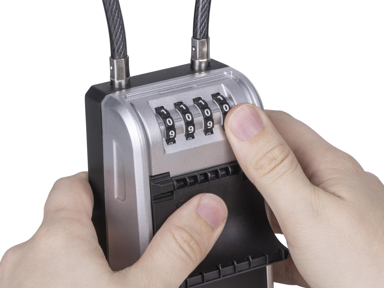 The Master Lock 5482EURD Select Access® Flexible Shackle Key Lock Box reimagines how you secure your property by offering unmatched installation flexibility. Its metal body provides better resistance to attacks. Its 4-dial combination lock features large dials which are easy to read, grip and turn. Fitted with a durable weather resistant cover protecting the body and lock from the elements.
