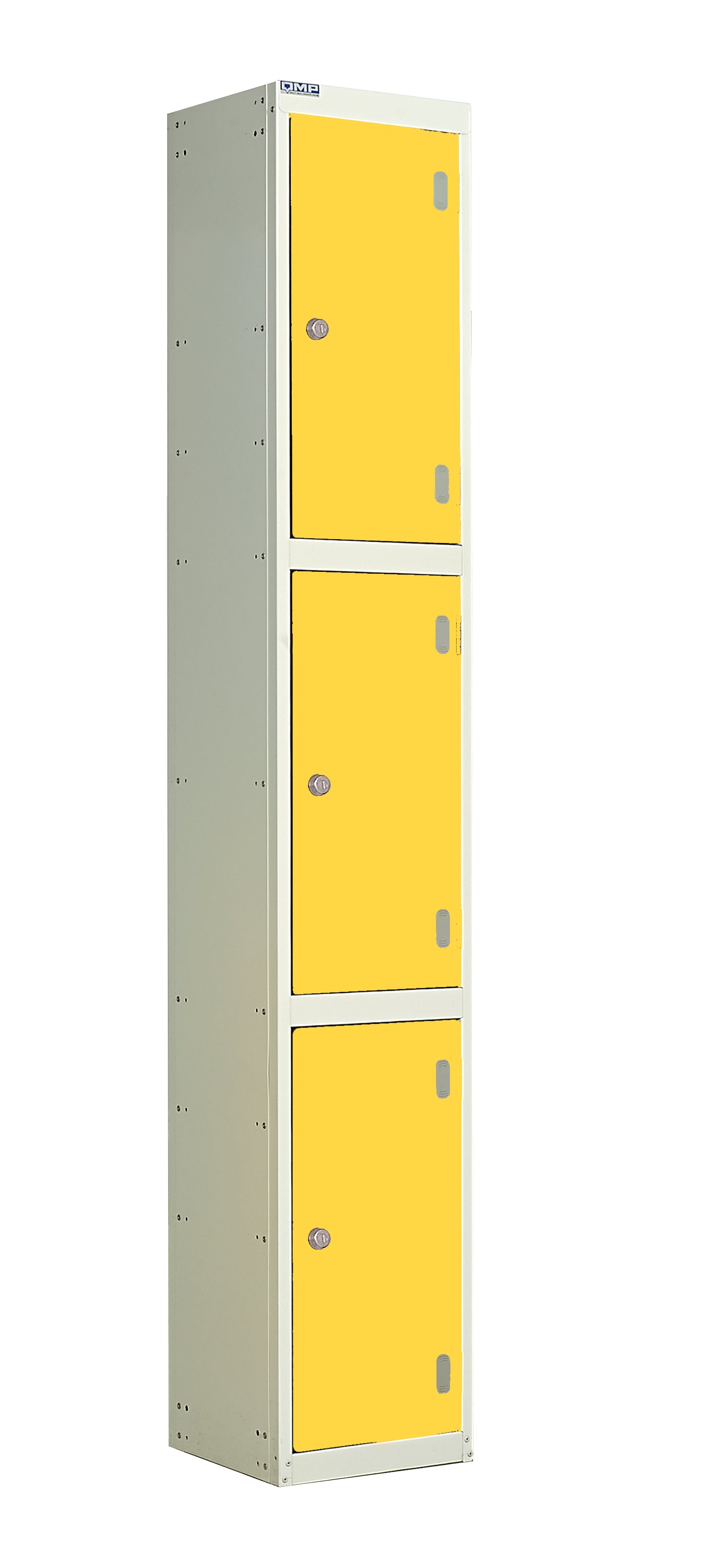 Laminate Door Lockers (H.1800 x W.300 x D.300mm) 3 Compartments - Spectrum Yellow