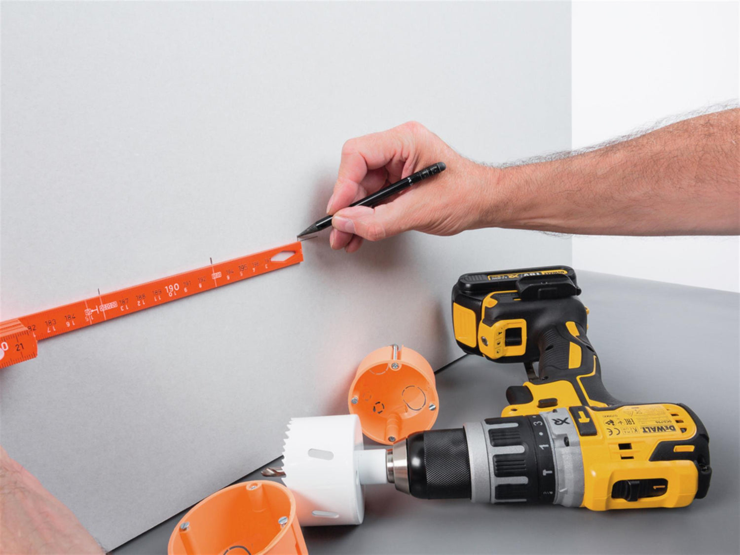 The Wiha Longlife® Electrician's Folding Ruler is able to perform several work tasks. It has an integrated holder function for cables between 3 and 7mm, making it easier to route them in difficult-to-access installation locations. There is also a box distance scale for up to 3 flush boxes and edge distance marking at 150mm.