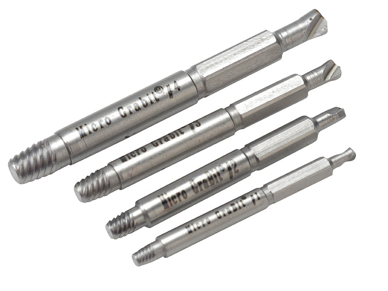 The Boa Micro Grabit® extractor is a precision instrument, designed for the electronics and precision engineering industries. It removes delicate screws and bolts in more restricted areas and the set combination will allow fast and efficient removal of all small size diameter screws and bolts. Great for fixing cameras, glasses, tech. equipment etc. Works with all standard variable drills.