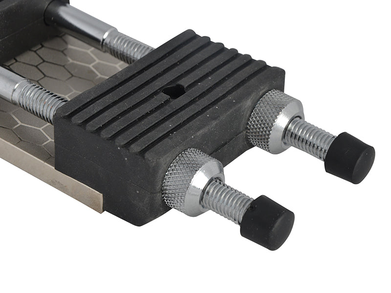 The docking station is constructed using three solid, non-slip rubber pads and robust steel rods that are fitted with easy grip screw nuts for precise and firm fixing of the stone. The docking station is adjustable to accept stones from 135 to 216mm in length and has a 6mm deep recess to provide a secure and firm base for all sharpening operations.