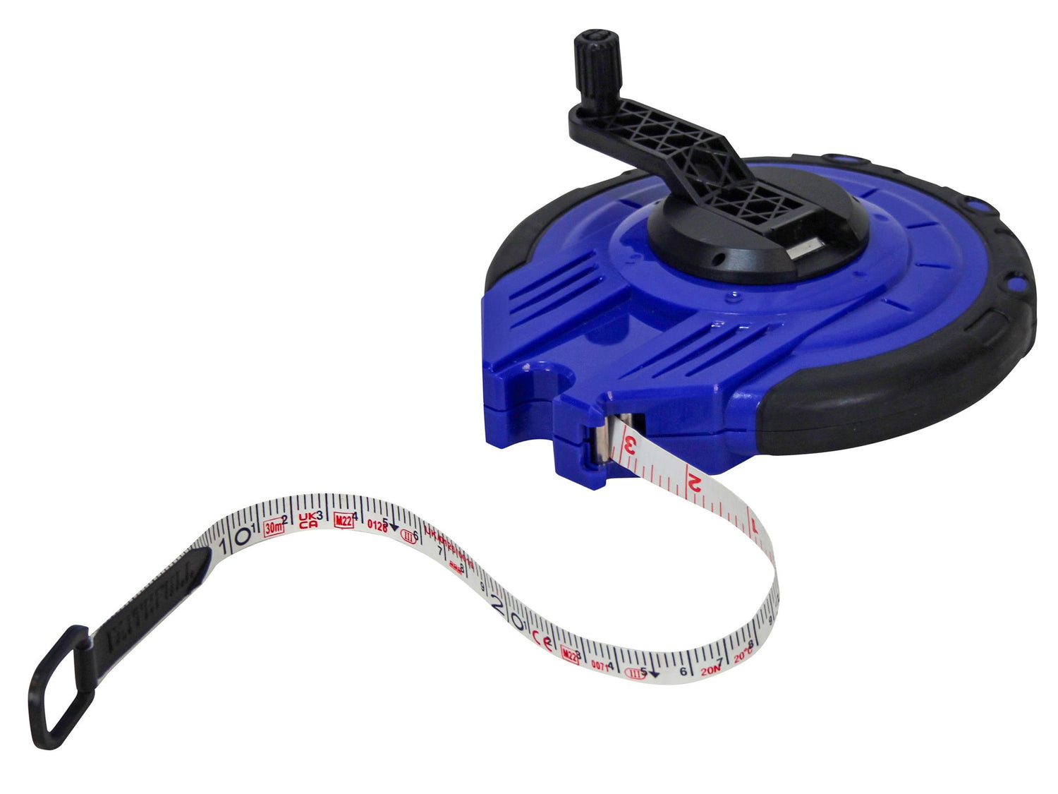 The housing chamber for the tape is made of tough ABS plastic, which features a soft grip outer case and a fold out rewind handle that has a 3:1 gearing for fast and efficient tape retracting.