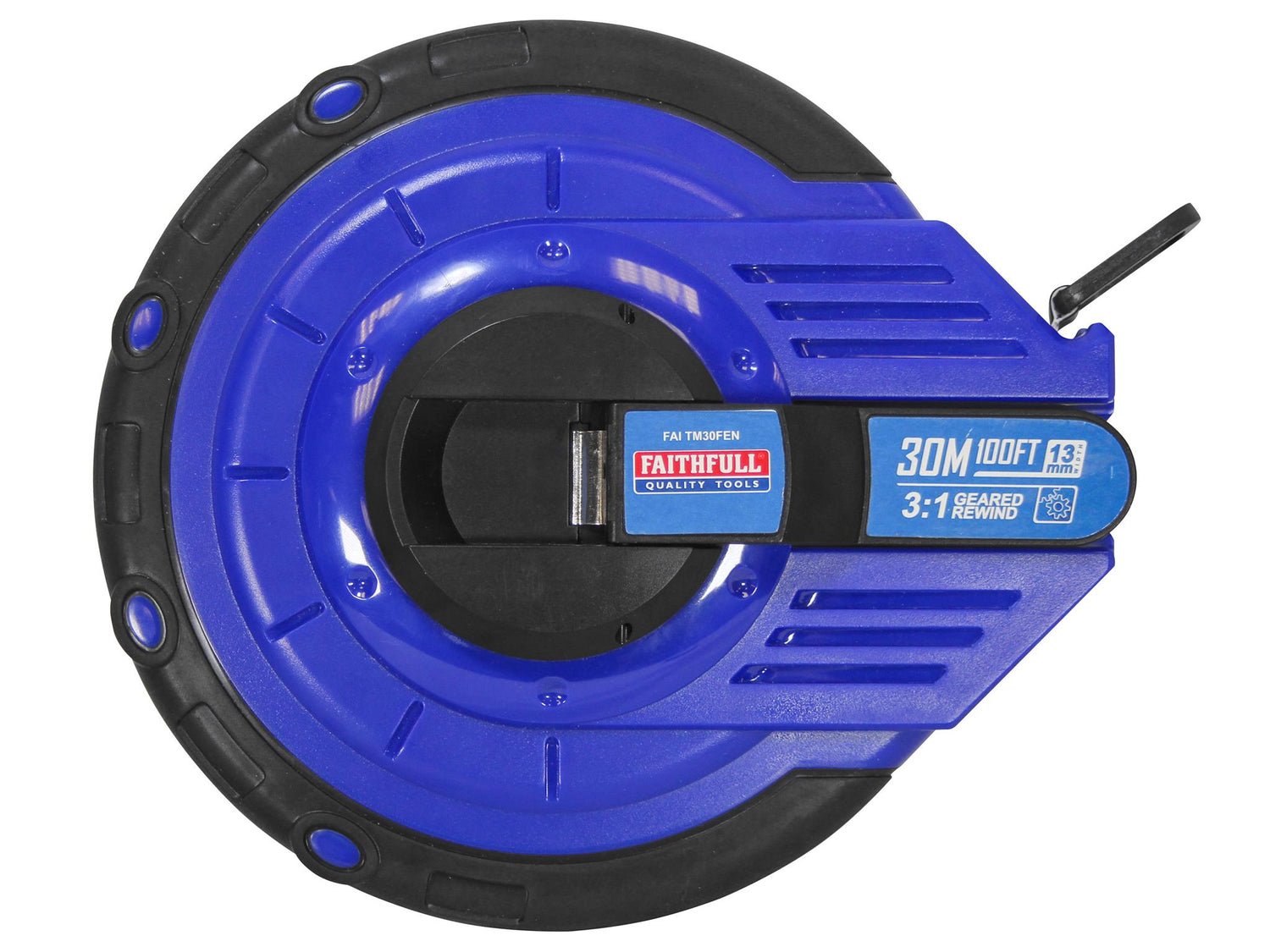Faithfull Enclosed Fibreglass Long Tape 30m/100ft (Width 13mm)