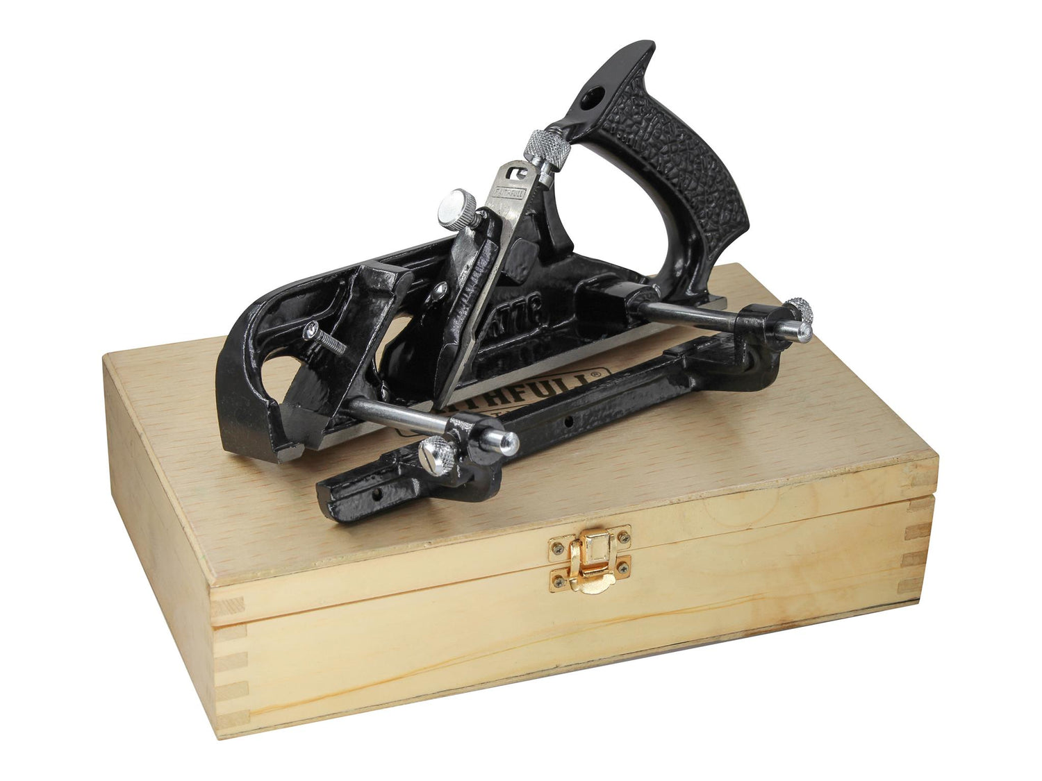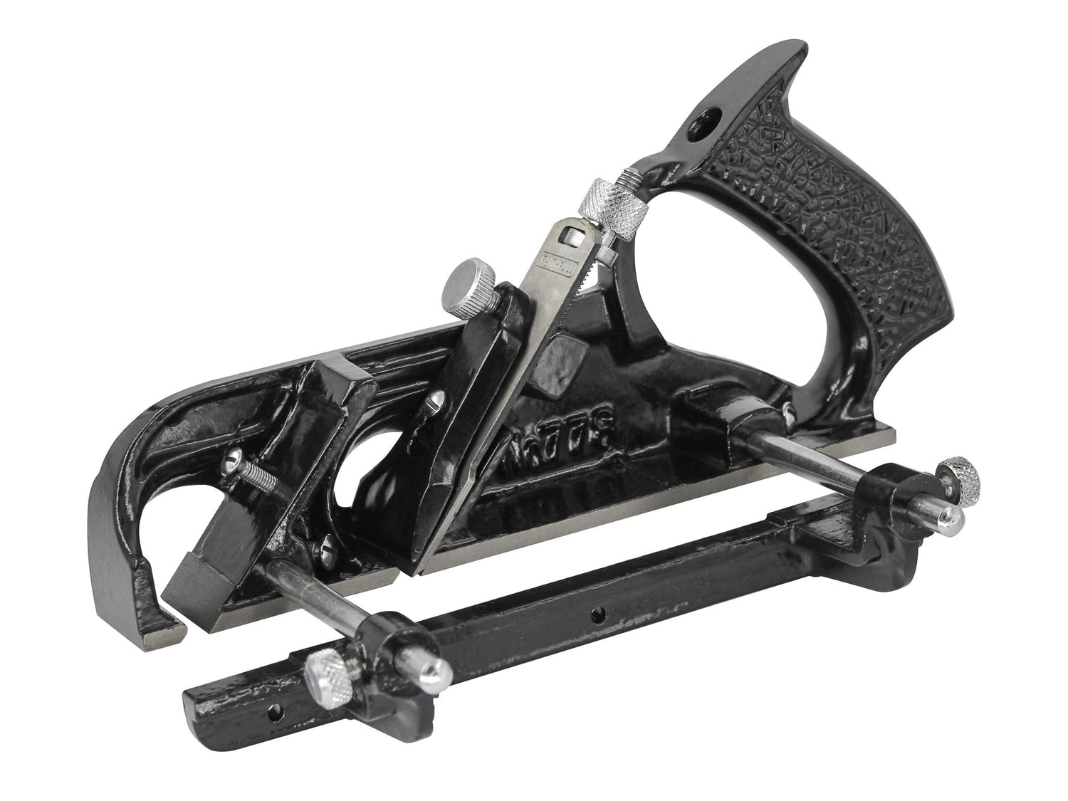 With the cutter in the centre position, the plane can be used for cutting rebates, and has a fine screw adjuster for precise control of the depth of cut.