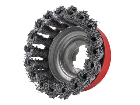 Faithfull X-LOCK Conical Wire Brush 115mm M14x2, 0.50mm Steel Wire
