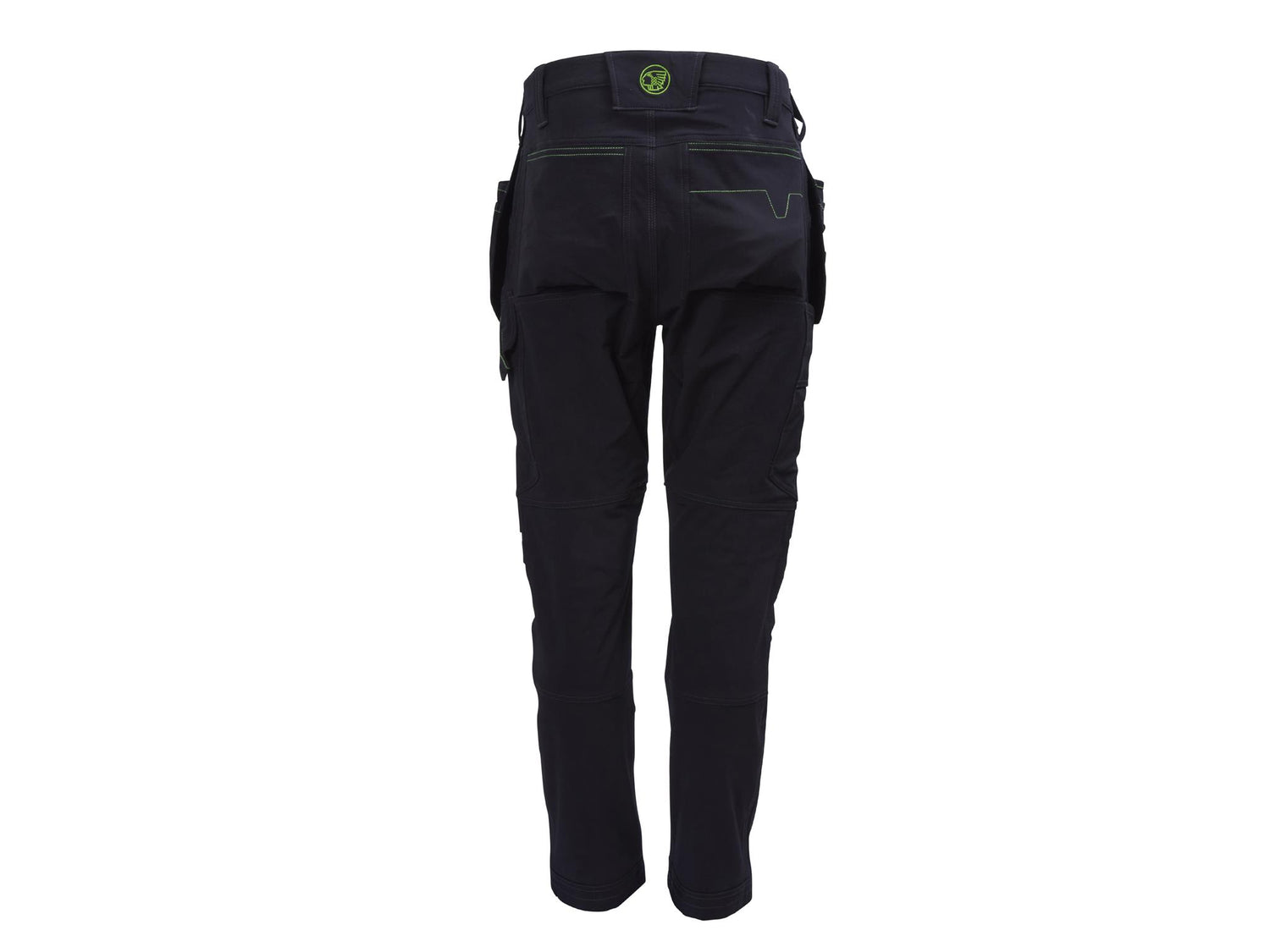 They have a variety of pockets, including a side cargo pocket, 2 holster pockets and a secure side pocket for your mobile. The two rear pockets are inset within the trouser, ensuring there is no bellowing fabric.