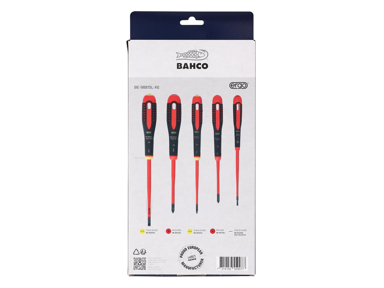 1 x Bahco XMAS BE-9881SL ERGO™ Slim VDE Insulated Screwdriver Set, 5 Piece.