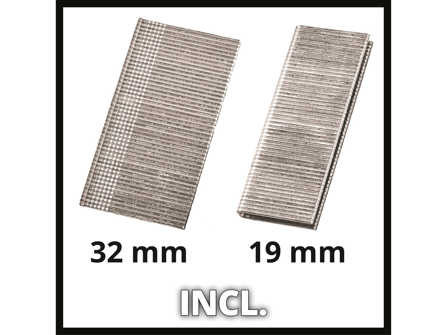 Delivery includes practical belt clip for safe storage and 300 nails (32mm) + 300 staples (19mm). With the supplied hexagon key, nail/staple jams can be easily and quickly fixed. Release protection prevents unintentional tacking/nailing, preventing injury.