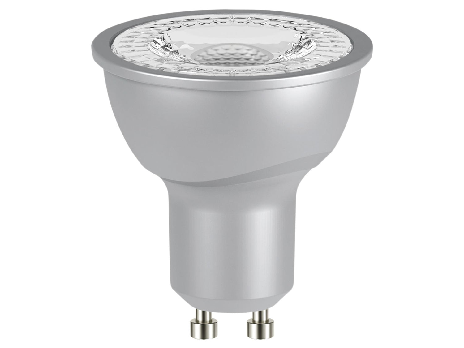 These Dimmable, Silver Finish Energizer® LED GU10 HIGHTECH Bulbs replicate traditional halogen bulbs in appearance and output, whilst offering an 85% energy saving versus their halogen equivalent. The bulbs are a true retro fit design, provide instant, flicker-free light and have an average rated life of 25,000 hours.