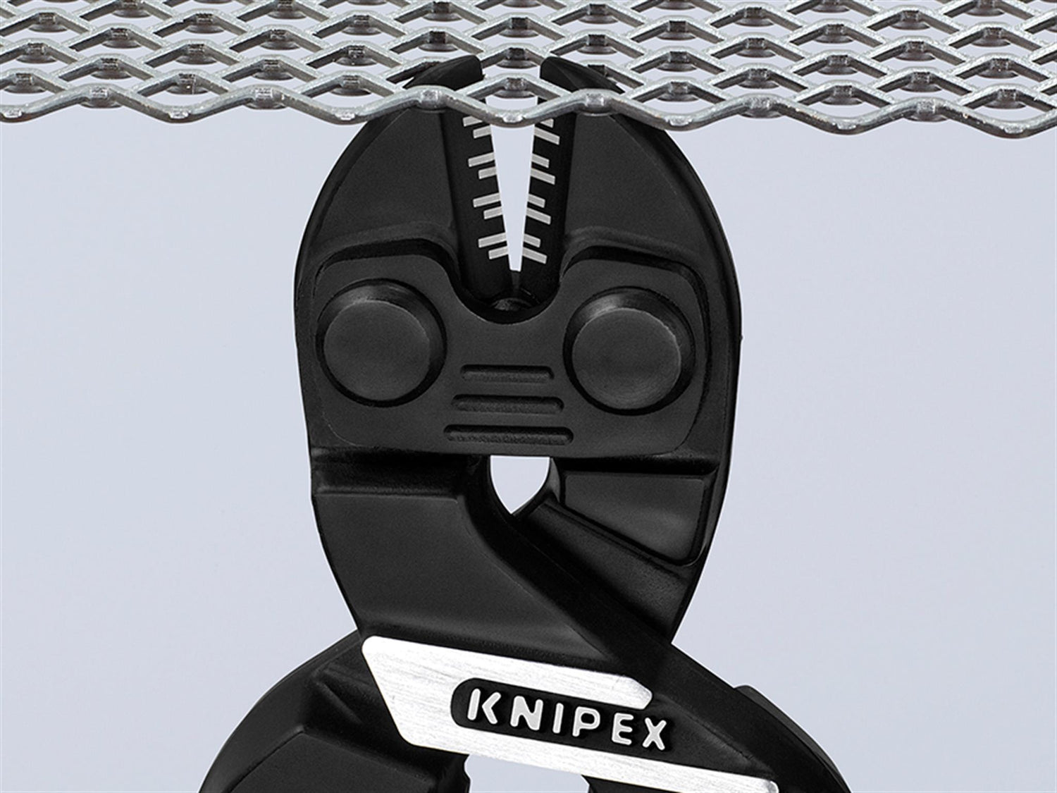 Knipex CoBolt® S Compact Bolt Cutters are specially designed for small hands. Made from forged heavy-duty, chrome vanadium steel and oil-hardened multiple times. With precision cutting edges that have been induction hardened, approx. 64 HRC, ideal for cutting soft and hard wire as well as piano wire. Cuts components such as bolts, nails, rivets etc. up to Ø4.4mm.