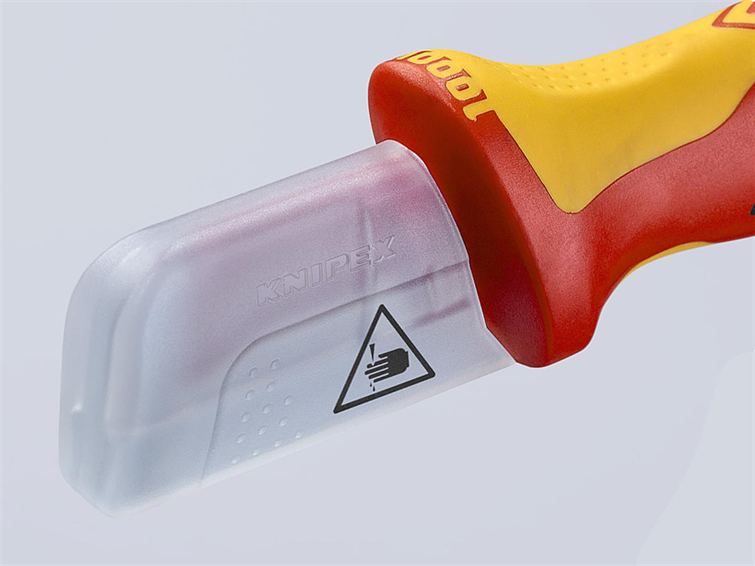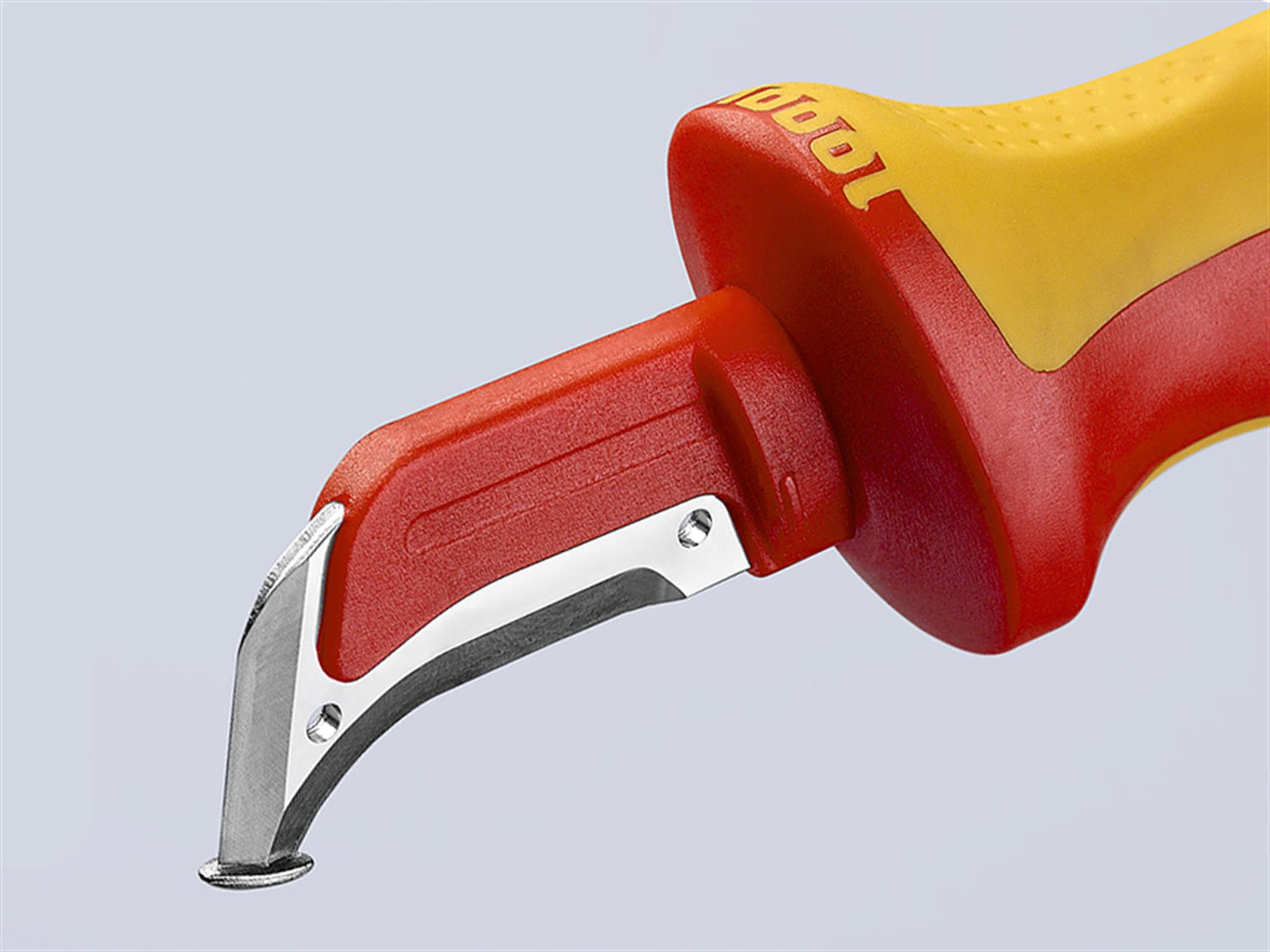 The Knipex 98 Series VDE Stripping Knife, with an ergonomically designed handle, is VDE tested up to 10,000V, and safe to work at up to 1,000V. The 98 Series also conforms to DIN EN / IEC 60900.