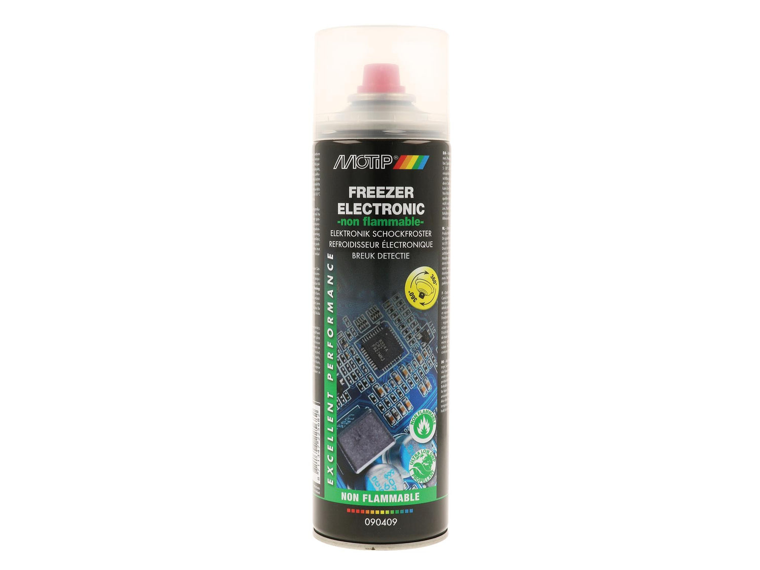 MoTip Pro Freezer Electronic Spray has a non-flammable formula. It briefly decreases the temperature to -55°C, to trace cracks in printed circuit boards. With a directed jet spray that can be used in various positions.