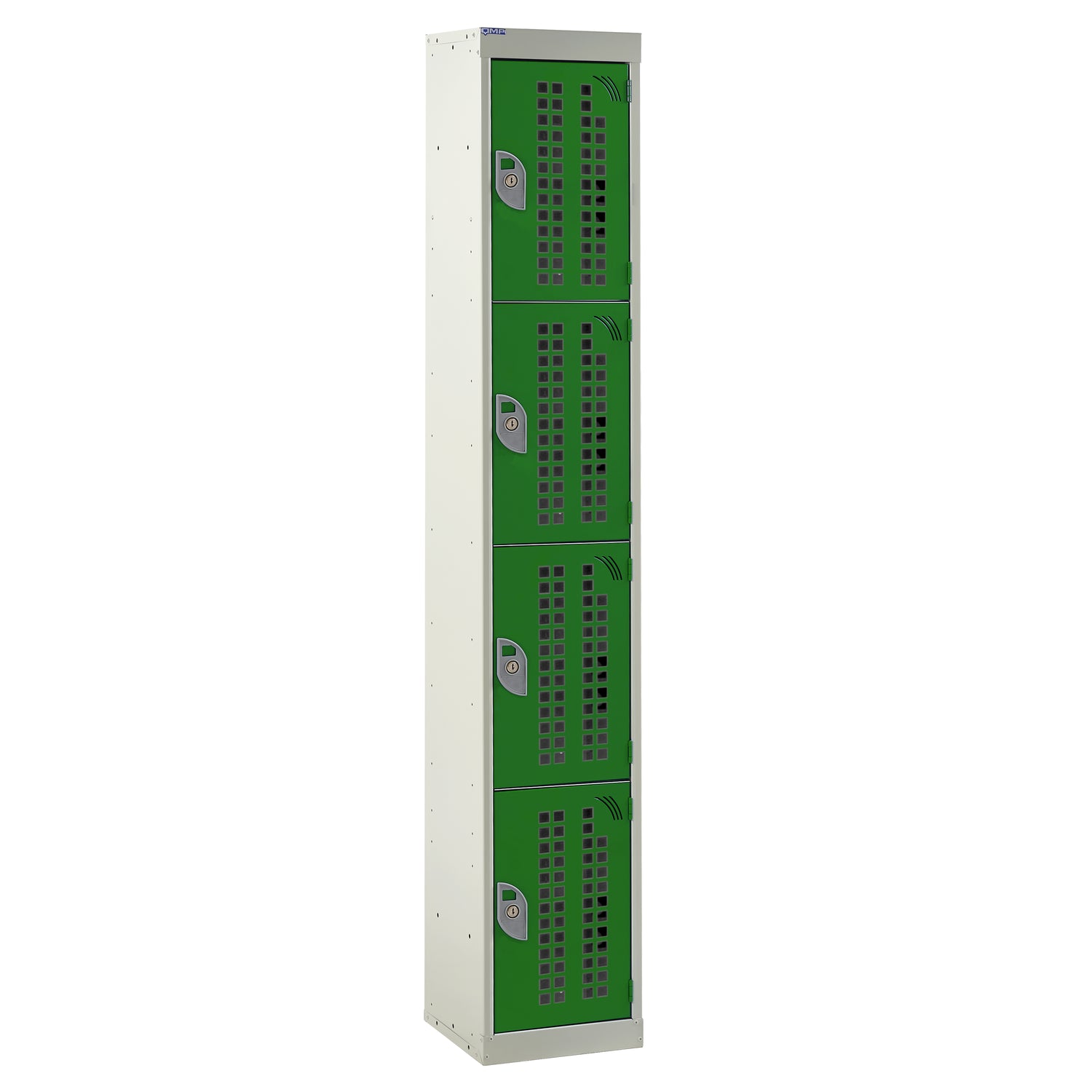 Perforated Door Locker (1800x300x450mm) 4 Compartments - Green