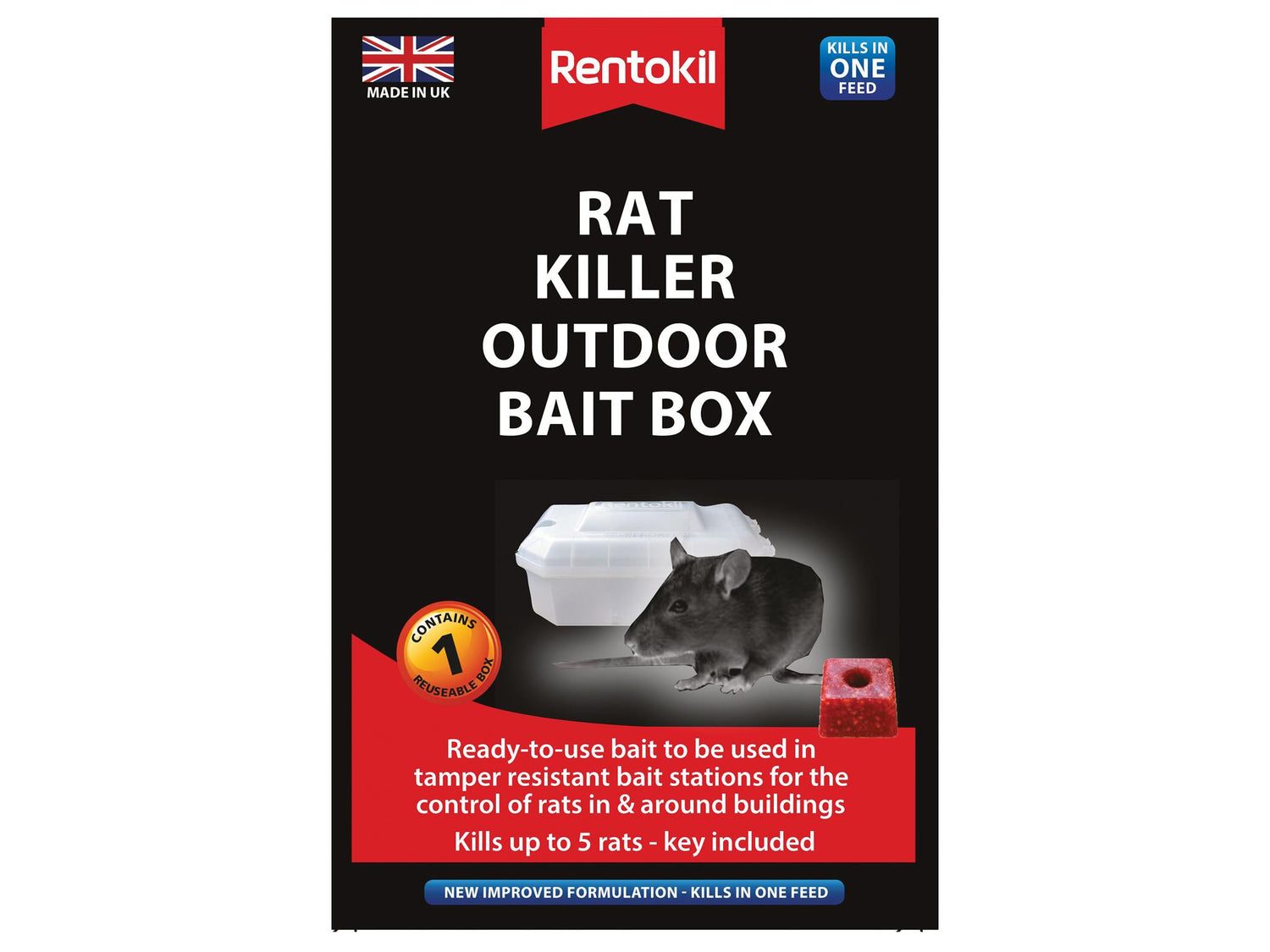 Rentokil Rat Killer Outdoor Bait Box is an easy-to-use pre-baited rat bait box for safer baiting in and around the home and garden.