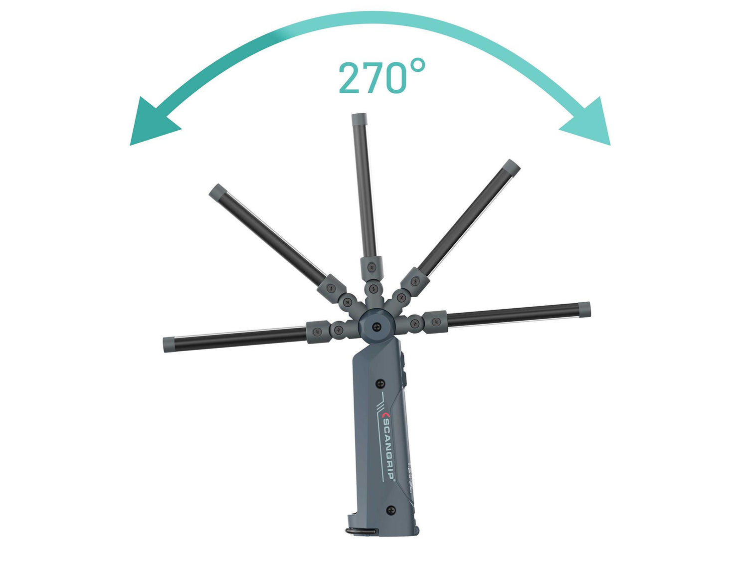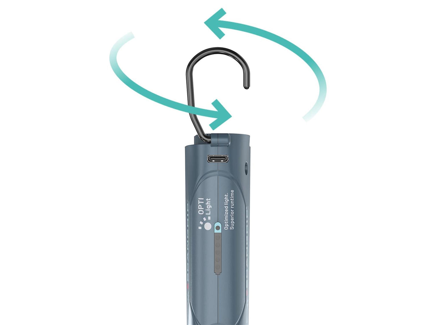 It has a built-in magnet and hook, as well as a flexible 100 % foldable body offering flexible positioning options. The design allows for traditional hand-held use, and its compact size ensures portability anywhere. When folded, it easily transforms into a flashlight to provide a firm grip. In addition, a user-friendly battery indicator keeps you informed about the battery level.