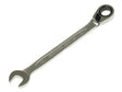 This Teng Tools ratcheting combination spanner combines an open ended spanner with a 72-tooth 12-point ring ratchet. The ratchet has a 'flip reverse' feature, which switches the direction of the ratchet, and it is offset at a 13° angle for ease of access.