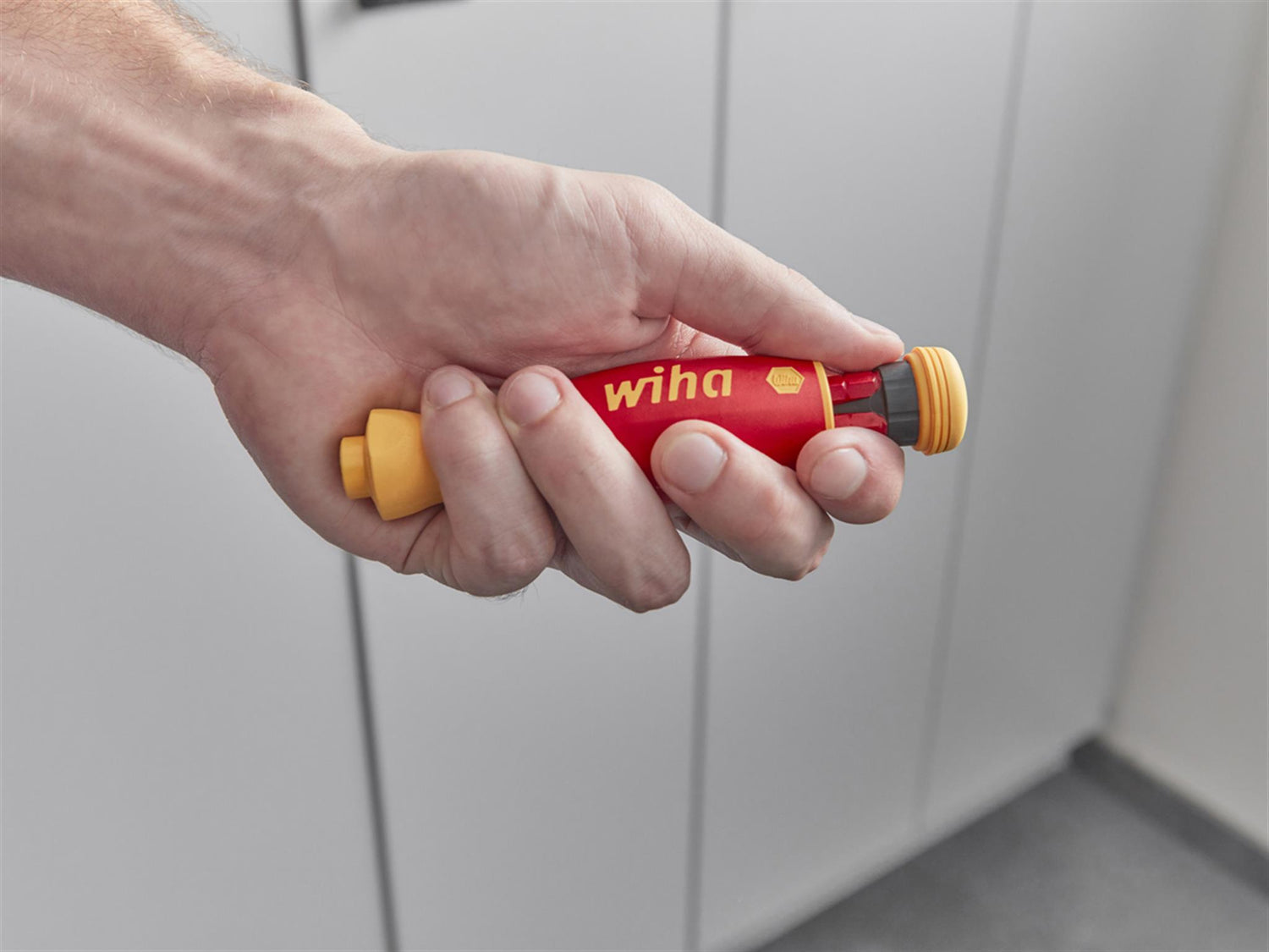 The Wiha electric PocketMax® Screwdriver is made for controlled fastening for live parts up to 1,000 V AC. It conveniently fits into any shirt or pants pocket, the ideal companion for every professional.
