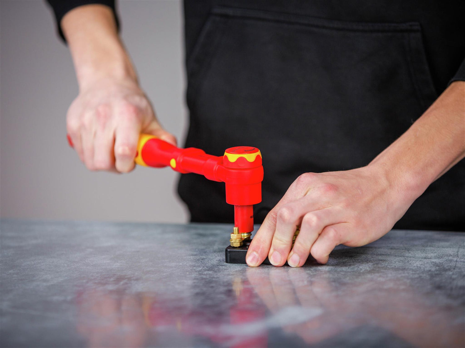 Its 10° switching angle is great for fastening components onto bus bars in junction boxes. Individually tested as per the international IEC 60900 standard, allowing users to work safely on live parts up to 1,000 V AC.