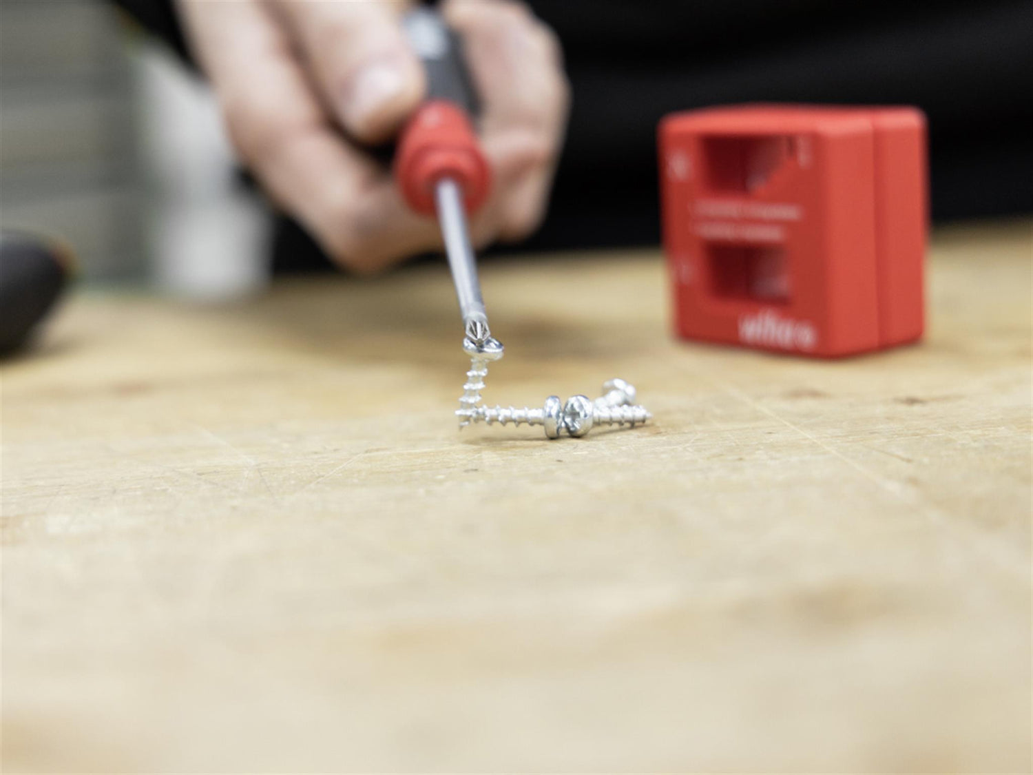 The Wiha Magnetiser/Demagnetiser for magnetising and demagnetising blades and blade-like tools made of steel. The tool's strong permanent magnet has an extremely long service life and is also suitable for magnetising tweezers and other steel tools.
