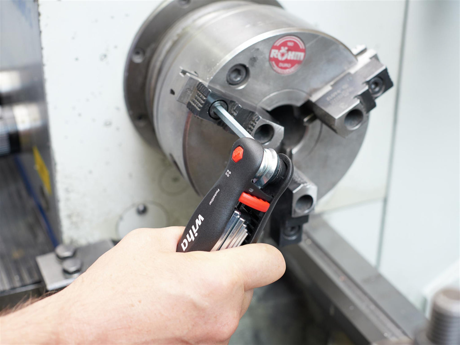 In the 180° position, the tool is transformed into a screwdriver, for example. When the key is positioned on the 270° shoulder stop, it becomes a tool with a practical lever arm for high torques. It is also a clever solution for situations where users require just one single key to move in the work position since PocketStar stops the other keys from swinging back and getting in the way.